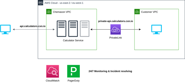 The system was designed to execute calculations in a robust and secure way with low latency (Figure 2). Autoscaling of the Elastic Container Service and multi-regional deployment ensures prompt response time. Chemaxon software development processes are conform to the Information Security Management System standard: ISO/IEC 27001:2013 to ensure that code quality and software security aspects are integrated into the whole development pipeline. AWS customers are offered to call the services through PrivateLink technology to communicate via the AWS backbone network, without passing the public internet. The stateless service was built in a way that the processed structures are not stored in any form. Learn more about the details in the AWS product specific documentation and take a look at the curl, Python, JS and Java code snippets to get started without hassle.