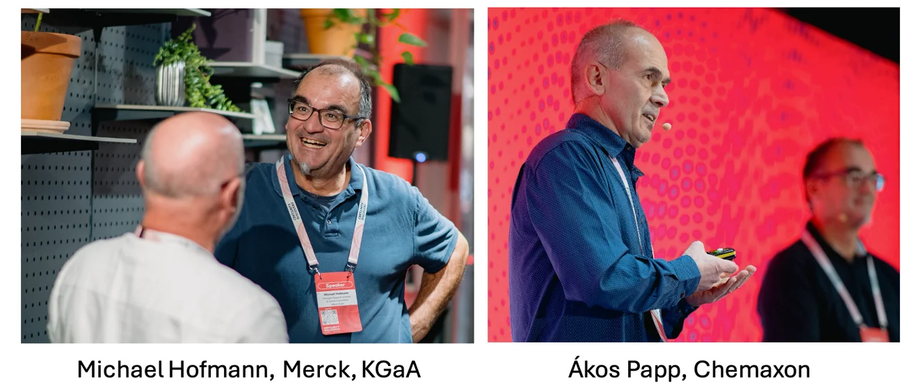 Michael Hofmann of Merck KGaA never ceases to cheer me with his spontaneous smiles. There is not a picture in the photo gallery in which he is not smiling; so good to see him back at a Chemaxon event. Michael and Ákos Papp gave an update on the use of Chemaxon’s Compliance Checker, used at Merck since 2017. Today, Chemaxon runs Compliance Checker as a fully managed in-house web service and Merck uses it to check all internal compound stores. Merck integrated it into Marvin for single interactive checks and into Excel for batch ones, and into the compound shipping tool to avoid buying controlled compounds in Germany. Chemaxon developed a custom application for automatic checking of the research database. In 2021, Merck added the tariff code cHemTS to its permanent application portfolio.