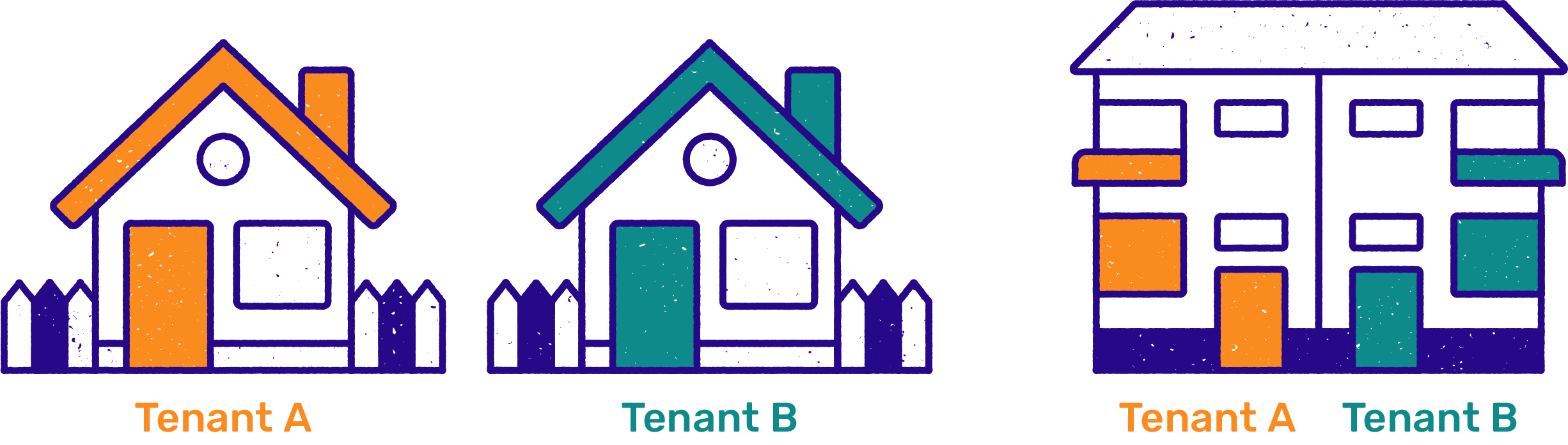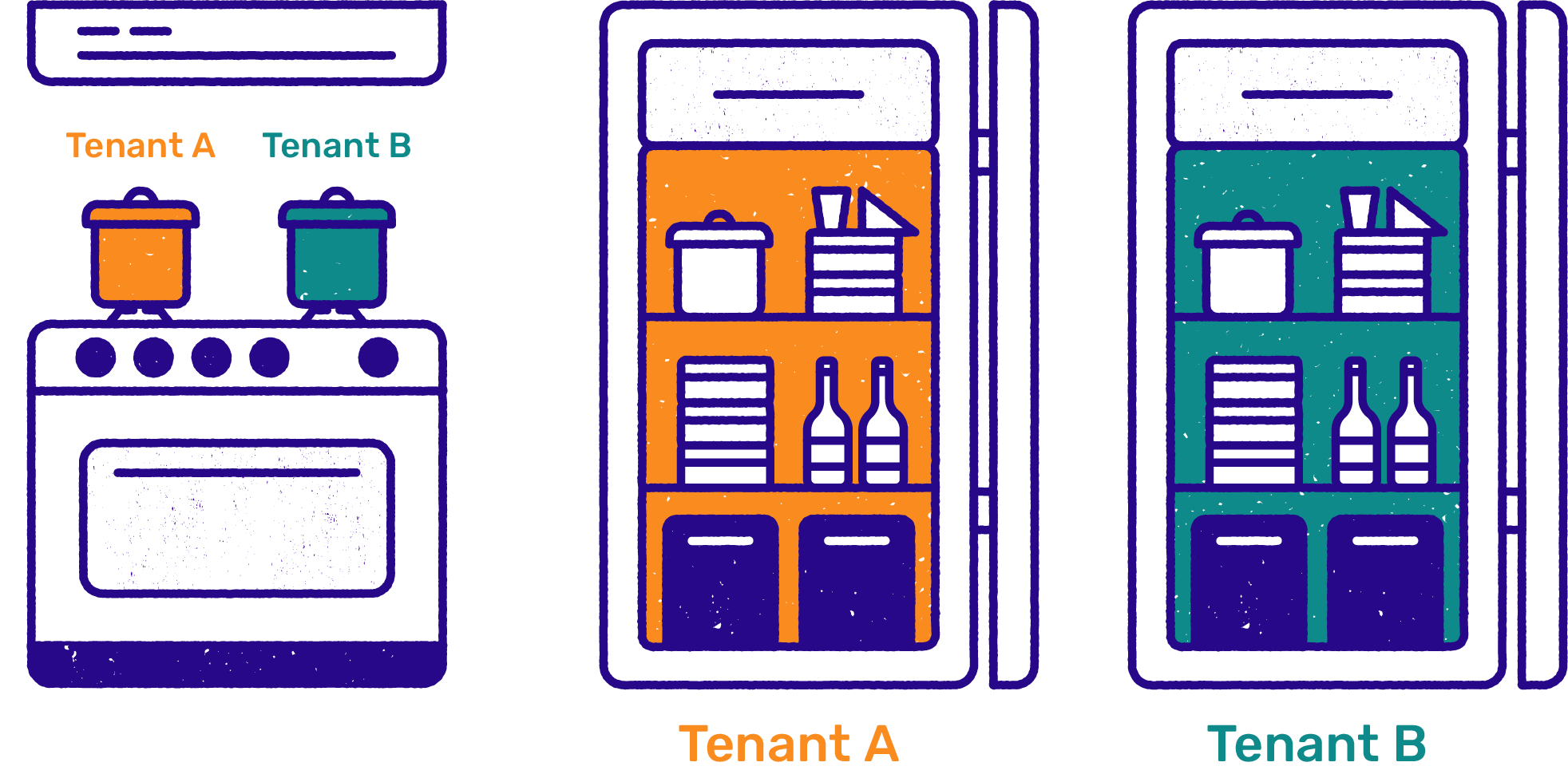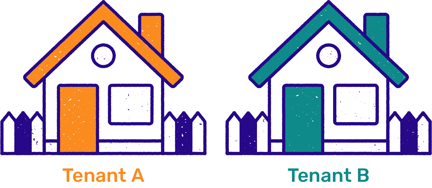 - Single tenant: tenants are siloed and isolated via dedicated infrastructure