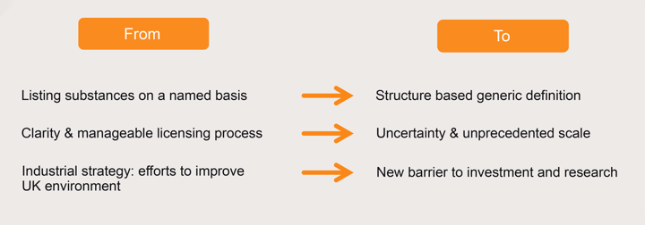 (In the opinion of the author) It is virtually impossible for any group or any size, large Pharma, small Pharma, contract research organisations, academia, charitable research groups and even legislators to comprehend the scope of generic legislation on their workflows. This includes, storage, usage, synthesis (whether as part of a synthetic route or as final product) shipping in any quantities or concentration, whether around the UK or into or out of the world.