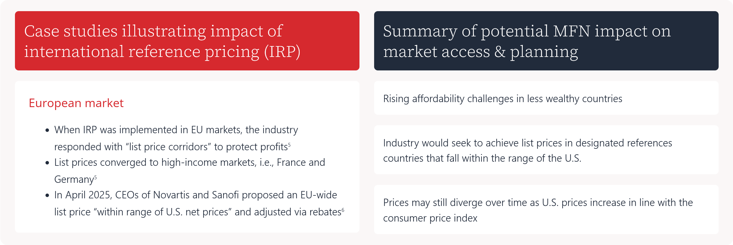 - In April 2025, CEOs of Novartis and Sanofi proposed an EU-wide list price “within range of U.S. net prices” and adjusted via rebates6
