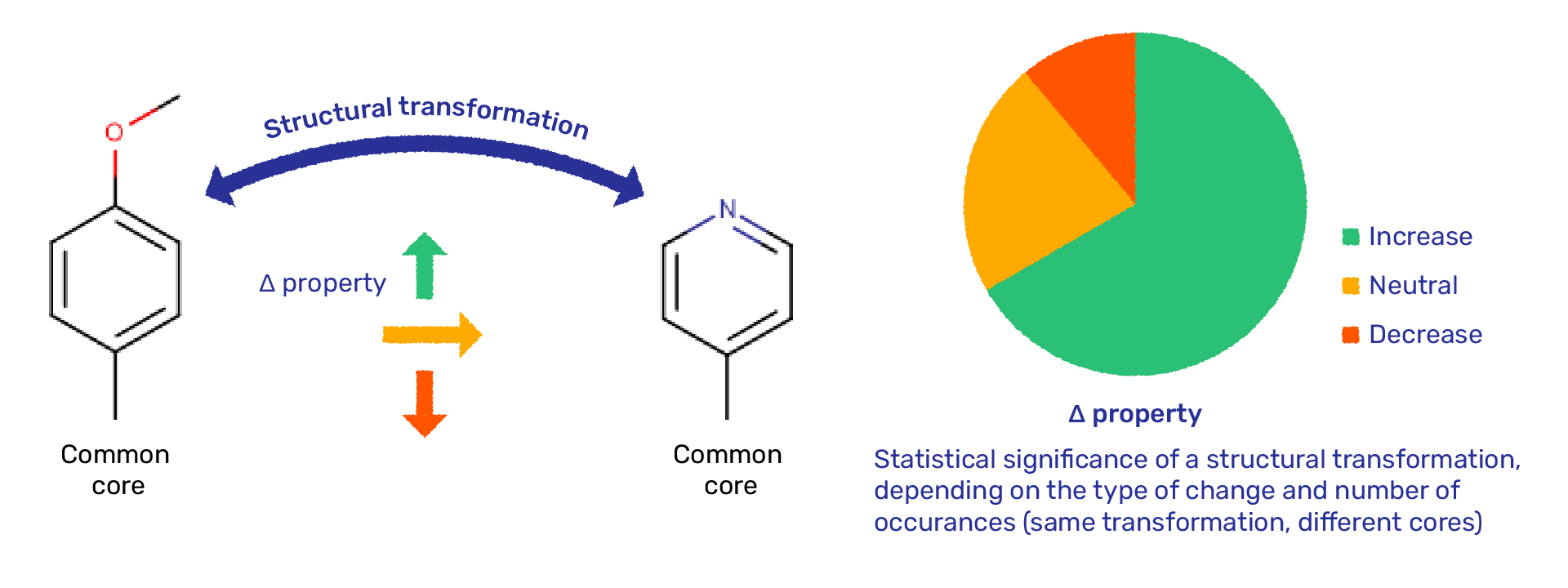 Designing and optimizing novel drugs require both creativity and knowledge. Using the Matched Molecular Pairs method is one way of supporting this process. Commonly, MMP is used to connect  structural changes of drug molecules to corresponding changes in assay readouts (Figure 1).