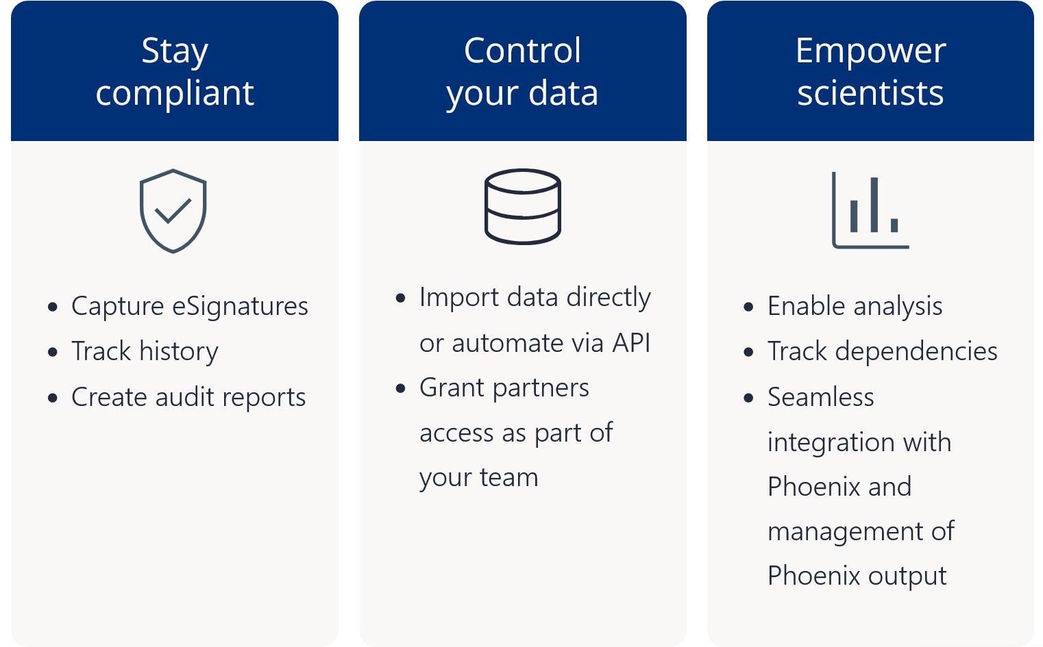 Pharmacometric teams face many data-related productivity challenges. For example, version control problems and data silos may create weeks of quality control and aggregation work before scientists can begin modeling and analysis. Those lucky enough to have a single source of data often still struggle to find, access, and work with the data in their analysis and modeling tools. Once found, they may need to manually upload delimited files and then repeat the process all over again each time the data is updated. Too often, these manual processes lead to costly errors and delays.
