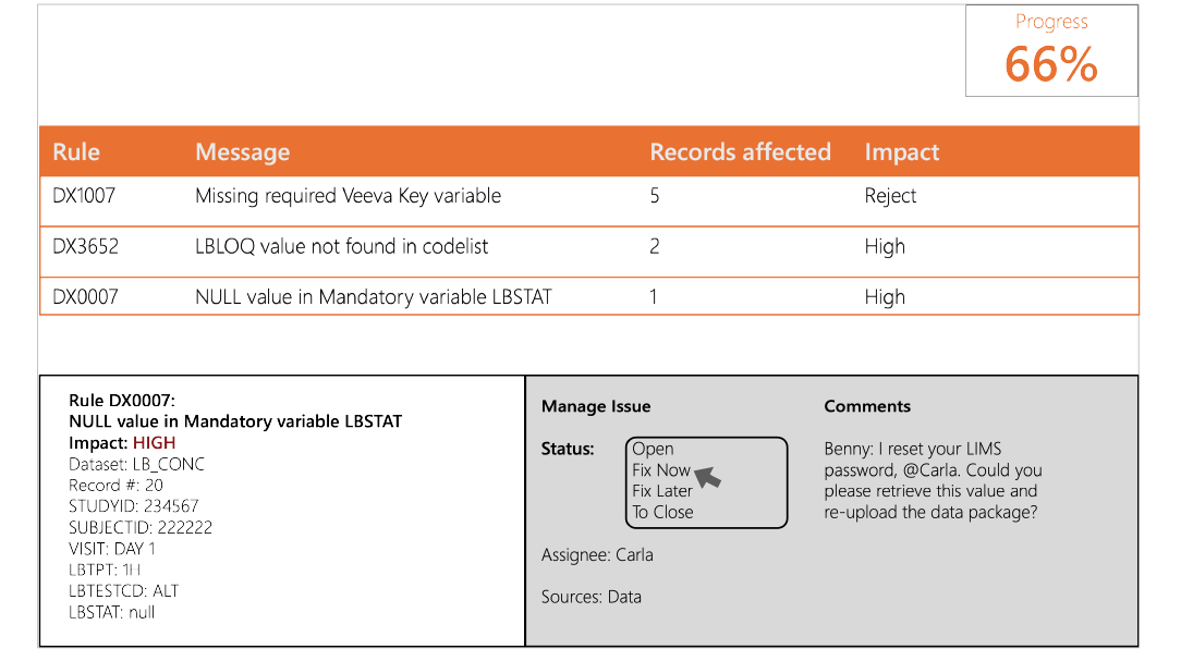 Collaborate with CROs, developers, and others in a central workspace to resolve issues discovered during validation.