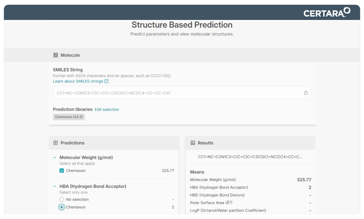 - Structure-based predictors to estimate key physicochemical properties directly from chemical structure